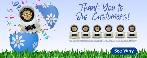 We’re lucky to have customers like you, who rated us “Highest in Customer Satisfaction Among Auto Insurers in the Central Region” for 6 out of 7 Years in a Row.”